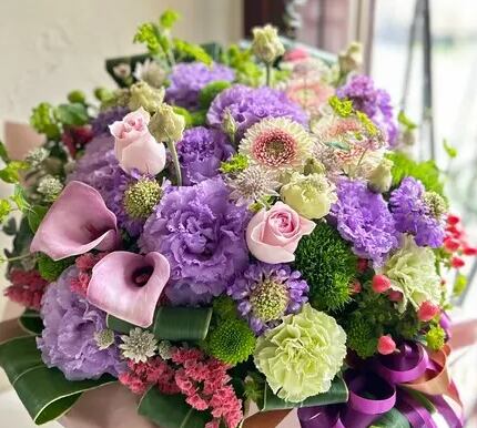 「シックで大人っぽい感じ」は紫系のお花を使用し、渋色系で大人華やかに仕上げます。
